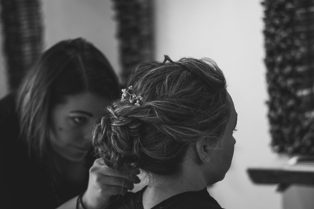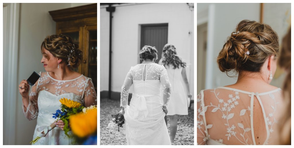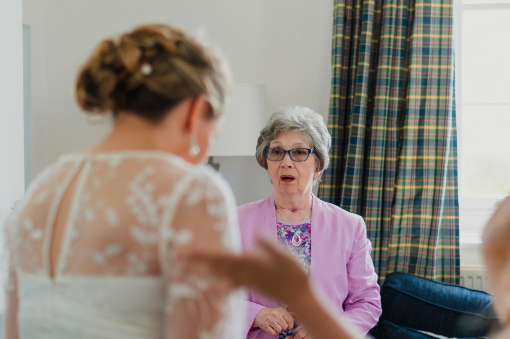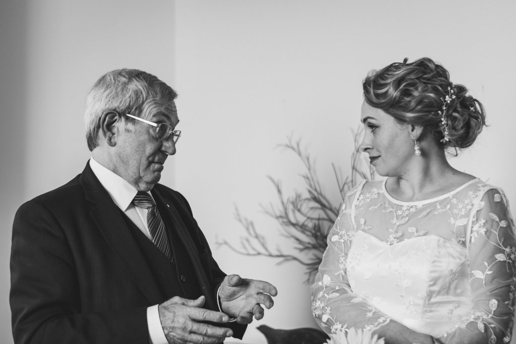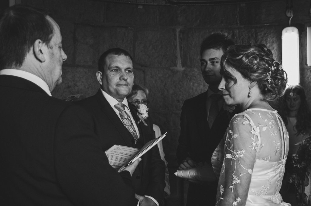 The wedding was small with only close family and friends, and had a lovely intimate vibe. I started my day meeting up with Sian and her daughter at Coast Hair Studio in Bridgend whilst they were having their hair and makeup done. Once they were looking stunning, we headed back to the cottage at the lighthouse for them to get dressed. As the guests started to trickle in to the cottage, I took a moment to head to the lighthouse to capture the decorations there, before everyone began to head to the ceremony room.