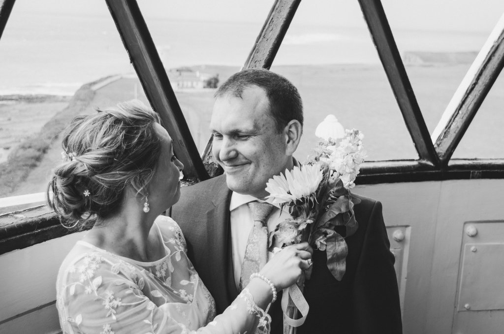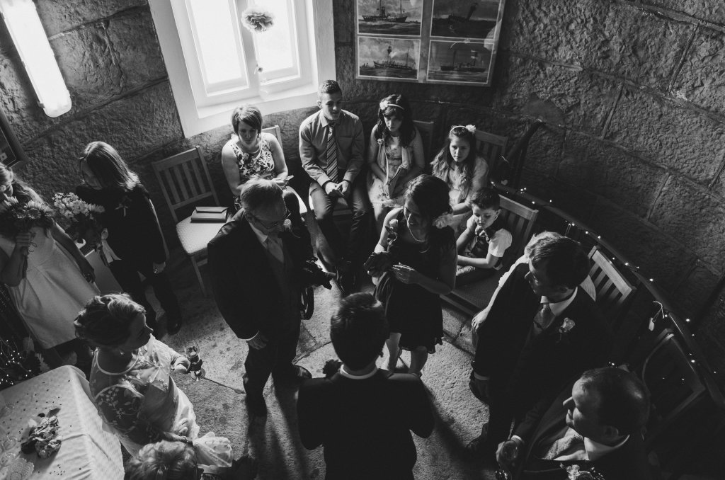 Despite the lighting being quite difficult (and very yellow!), I snapped away until the ceremony was done, thrilled with the challenge of such a unique venue. Then I took the new Mr and Mrs to the very top of the lighthouse for some photos, before heading back down for some photos in the lantern, before they reunited with their guests for a glass of champagne!